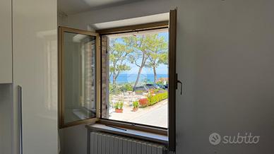 Proseguendo, nella zona notte, troviamo: un comodo bagno con vasca e due camere matrimoniali, quest'ultima gode di vista mare.