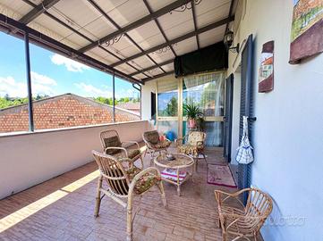 - ingresso, cucina, sala da pranzo, soggiorno, camera da letto, bagno con doccia e terrazzo coperto con vista panoramica.