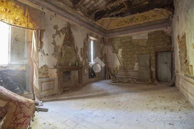 Al Primo piano, con scala d'ingresso affrescata, si trova un doppio salone di rappresentanza, cucina con ampio camino, 3 stanze con vista volta verso la pianura reatina e i laghi Lungo e Ripasottile. Sullo stesso piano vi sono 4 stanze della servitù con ingresso autonomo.
