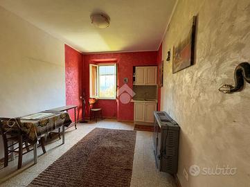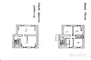 L'immobile è così composto: taverna con camino e garage al piano terra, al piano primo zona giorno con stufa, tre camere da letto e bagno con doccia; al piano terzo soffitta.