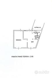 la casa si affaccia sulla piazza principale, troviamo al piano terra un spazioso negozio e un bar con bagno finestrato.
