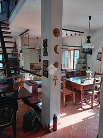 Piano terra : Ingresso in corridoio, taverna con camino, bagno con doccia, una piccola cucina, ripostiglio e scala che porta al piano superiore.