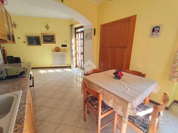 La casa è nel centro di Carezzano. L'ingresso è sulla luminosa zona giorno con cucina arredata e doppie finestre. Il primo piano è accessibile da comoda scala interna. Le due camere da letto sono una singola e una matrimoniale. Il bagno è ampio e dotato di vasca. La ristrutturazione rende la casa già abitabile.