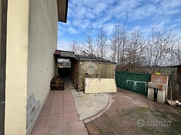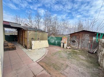 Come spazi esterni è presente un giardino privato piastrellato che circonda interamente l'abitazione. Sul lato Nord si ha una pompeiana che permette di mettere al coperto l'auto. Infine troviamo una piccola casetta in legno che funge da ricovero attrezzi.