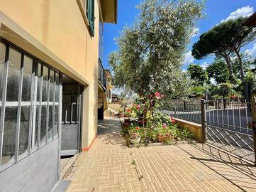 All'esterno troviamo un garage doppio di circa 100 mq e un giardino ampio sui tre lati, ideale per chi ama vivere all'aperto: nella parte più riservata si può realizzare una zona pranzo esterna perfetta per le serate estive.
