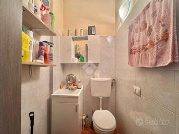 La cucina è abitabile e ben organizzata, ideale per la vita quotidiana, mentre la zona notte comprende una camera matrimoniale, una camera media e un bagno finestrato con doccia. È presente inoltre un comodo bagno di servizio e un ampio disimpegno, attualmente attrezzato con armadio guardaroba, che contribuisce a rendere gli spazi funzionali e ben distribuiti.