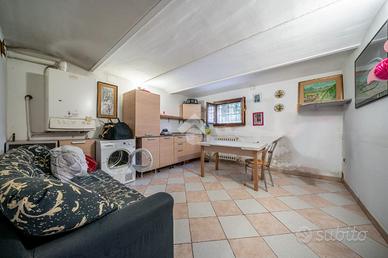 Al pian terreno troviamo l'ingresso che ci conduce a due comode cantine ed un ripostiglio.