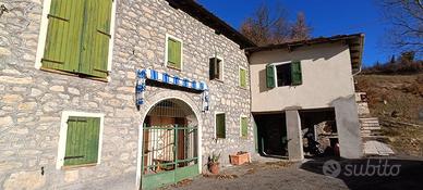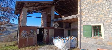 CA' BENNO: Rustico singolo, in parte ristrutturato con esterno in sasso a vista, in splendida posizione tranquilla e rialzata, esposta a sud. Composto da due appartamenti, il primo di 105 mq. , con soggiorno con angolo cottura, tre camere, bagno e portico, in parte ristrutturato con riscaldamento sia a stufa che con radiatori, il secondo di 70 mq. al grezzo a parte bagno e una camera, composto da: soggiorno, cucina, camera, bagno e portico. Inoltre varie cantine e fabbricato ex stalla/fienile con possibilità di garage/deposito ed ampliamento delle abitazioni. Area cortiliva di circa 300 mq., inoltre terreno agricolo circostante di circa 8 biolche, oltre a un' ulteriore biolca scarsa in altri tre lotti più distanti. Scarico fognario in fossa biologica. Posizione comoda alla fondovalle che dista un km, a 4 km da Ponte Secchia, 14 km da Roteglia. Il tetto della abitazione è da sistemare con la guaina e la stalla in parte da consolidare.