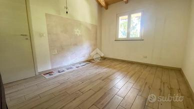 La casa, al suo ingresso, sviluppa un ampio soggiorno con angolo cottura, mentre i locali bagno, con box doccia, e camera da letto sono separate da corridoio.
