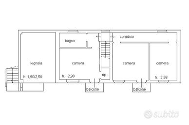 Salendo al primo piano abbiamo il bagno con doccia, rivisto di recente, e tre camere da letto di cui due matrimoniali dotate di balconcino ed una singola molto spaziosa.