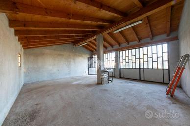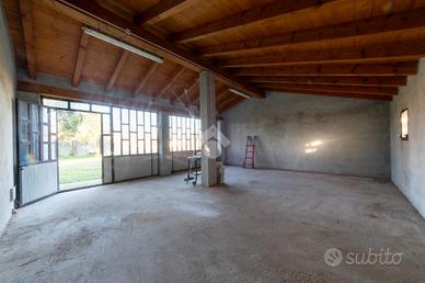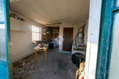 Sul cortile interno abbiamo un corpo di fabbrica separato della casa dove sono presenti il box auto doppio, un deposito per la legna, l'ex pollaio e il forno.