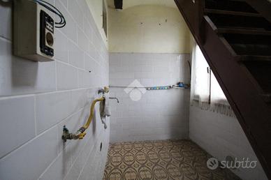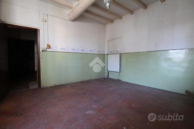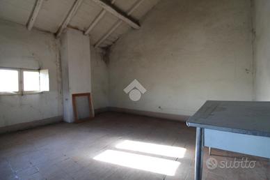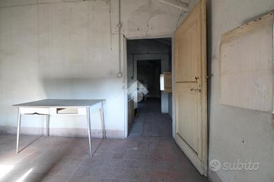 VILLALUNGA: Rif. 81 Complesso immobiliare costituito da fabbricato indipendente con: 1) Laboratorio artigianale di 250 mq. con portico e magazzino di 26 mq. 2) Abitazione per complessivi 200 mq. oltre a cantine e soffitte, suddivise in due unità, con possibilità di fare un' appartamento al piano terra di 76 mq. con soggiorno, cucina, due camere e bagno; appartamento al piano primo e secondo di 152 mq., composto da: P.1° soggiorno, cucina, bagno e camera matrimoniale; P.2° con due camere e mansarda di 40 mq. 3) Garage di 45 mq. 4) Area cortiliva di 1400 mq. oltre ad area demaniale (copertura del fosso). Da ristrutturare. Possibilità di permuta con altro immobile.