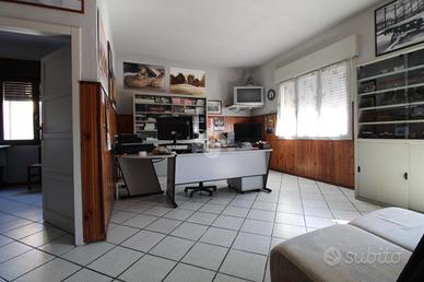 VILLALUNGA: Rif. 84 Nel centro della fazione, fabbricato con possibilità di multifunzione, composto da casa singola di 205 mq. per piano, con area privata di 150 mq. Piano terra con laboratorio di 187 mq., utilizzabile anche come garage, taverna, cantina e lavanderia; Piano primo di 187 mq. a destinazione uffici/studi privati con balcone e possibilità di trasformazione in abitazione, anche due unità; Piano secondo, sottotetto utilizzabile con altezza minima di mt. 2,7. Posizione comoda a Sassuolo e ai servizi.