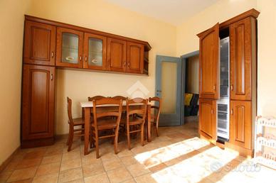 ingresso, doppio salone con camino, cucina abitabile e bagno al piano terra;