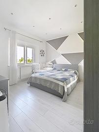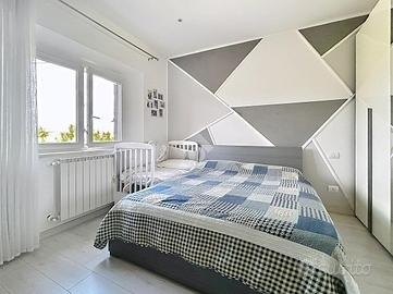 L'appartamento è cosi composto: soggiorno open - space, camera matrimoniale, camera media, bagno con doccia e finestra ed un sottotetto ad uso ripostiglio.