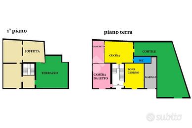 Il piano terra accoglie quattro locali con servizio, un box auto, una cantina e un cortile privato, perfetti per chi ama gli spazi autentici.