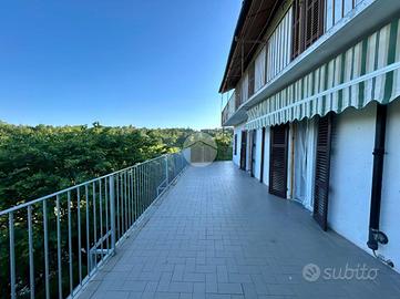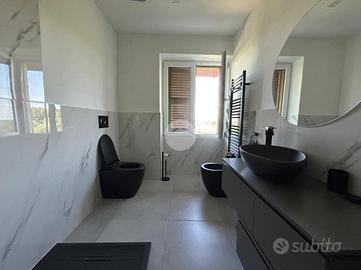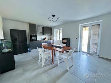 Al piano terra, un ampio soggiorno accoglie gli ospiti, mentre la cucina abitabile apre su un ampio terrazzo, ideale per momenti di relax all'aperto e un ottimo punto dal quale osservare le colline circostanti. al piano terra è presente inoltre un bagno.