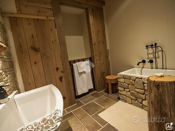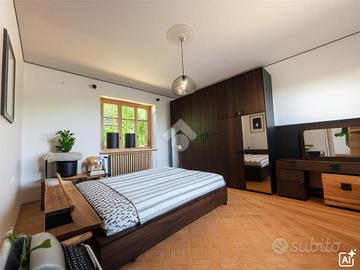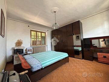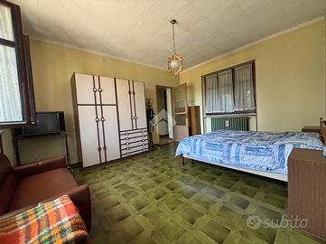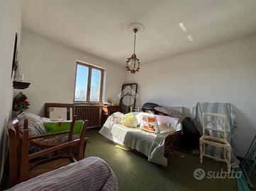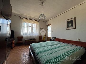 La casa è l'ultima di una via interna del centro paese, pertanto gode della massima tranquillita è riservatezza. Su due piani, offre una grande zona giorno al piano terra con bagno e accesso ai locali di servizio; cucina e soggiorno sono separati tra loro. Una scala interna porta al piano superiore dove due camere grandi lasciano lo spazio anche per la possibilità di un secono bagno. Gli affacci sono fronte e retro su finestre a tre vetri, offrendo molta luminosità agli spazi. Il cortile è un comodo spazio pavimentato con accesso sia a piedi sia carraio.