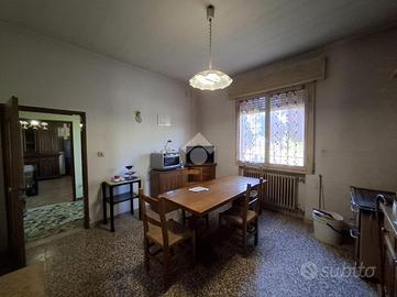 Il piano terra è composto da soggiorno, cucina separata finestrata con camino, camera da letto matrimoniale, camera da letto doppia, bagno finestrato e lavanderia, entrambi ristrutturati recentemente.