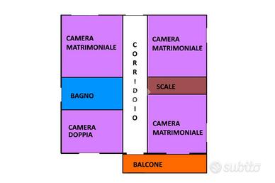Il piano superiore comprende invece tre camere da letto matrimoniali e una camera da letto doppia, oltre a un bagno finestrato e un balcone.