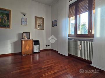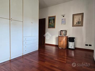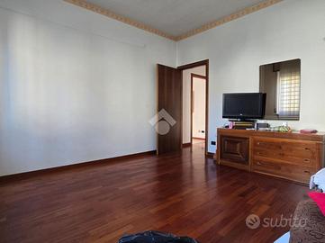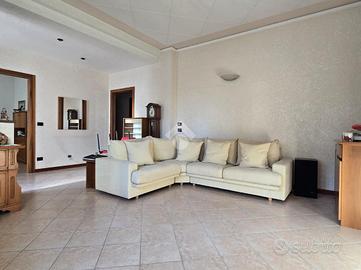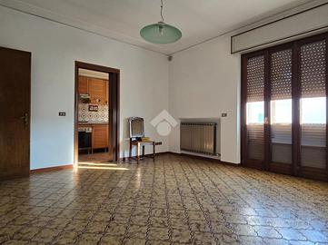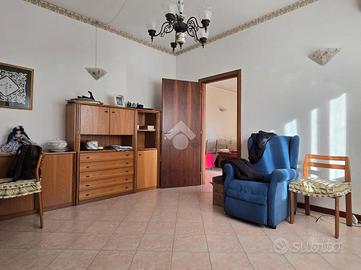 al piano rialzato appartamento quadrilocale composto da ingresso, soggiorno con balcone, cucina e retrocucina con balconcino, due camere matrimoniali, di cui una dotata di terrazzo e un bagno con finestra. Tramite una scala interna si può accedere al piano seminterrato dove sono presenti una cantina adibita a taverna ed una zona un'autorimessa per tre auto.