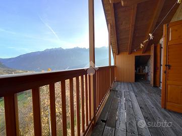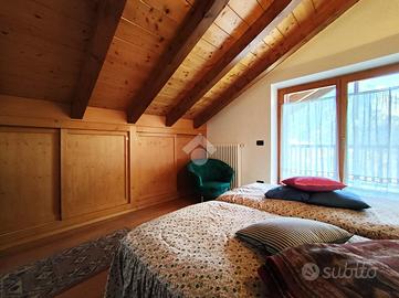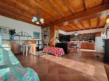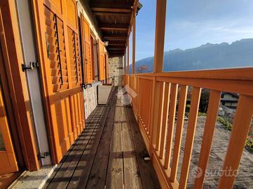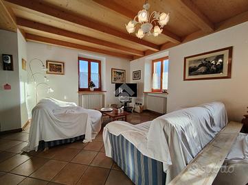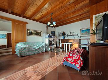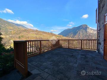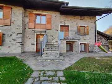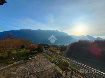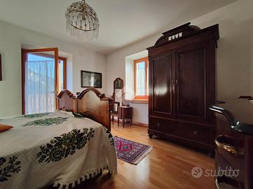 STRIGNO - Proponiamo in vendita casa indipendente di grandi dimensioni immersa nel verde con vista aperta sulle vallate circostanti, con giardino privato che la circonda sui quattro lati e due ingressi, uno primario su un cortile pavimentato in pietra locale e decorato con disegni geometrici e uno secondario lungo un viale alberato di proprietà.