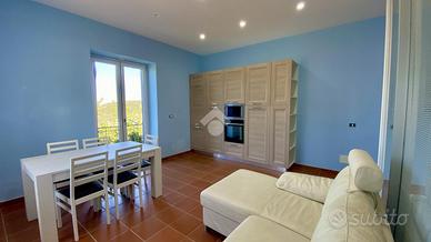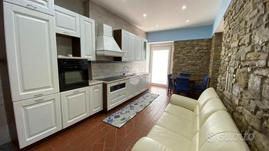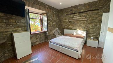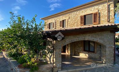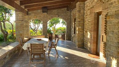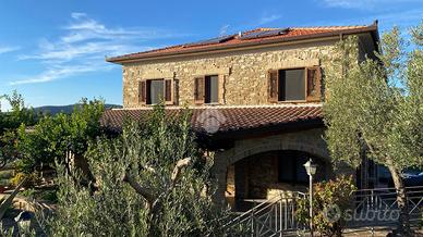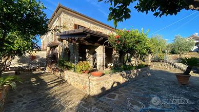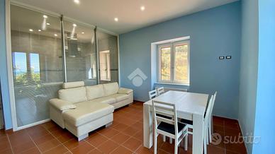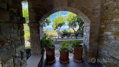 In località San Pietro, nel Comune di Castellabate, proponiamo in vendita una porzione di antico casale realizzato con la pietra locale, risalente ai primi del '900 e ristrutturato nel 2015, combinando il fascino storico con il comfort moderno. L'attenta ristrutturazione ed il minuzioso recupero conservativo hanno permesso di mantenere inalterato il fascino di questo antico casale privilegiando, dove è stato possibile, il recupero e l'utilizzo dei materiali originari nel rispetto della struttura dell'epoca e delle sue origini. La proprietà è suddivisa in due unità abitative, ideale per chi cerca spazio e versatilità. Gli interni, ottimamente ristrutturati e rifiniti, comprendono un appartamento al piano terra, con ingresso indipendente, di circa mq 50, composto da soggiorno con angolo cottura, un'ampia camera da letto matrimoniale e il bagno con la doccia idromassaggio. L'appartamento al primo piano, di circa mq 70, è composto da un ampio soggiorno con balcone vista mare, cucina con penisola attrezzata con impianto a induzione e con una vetrata che si affaccia nel soggiorno, due camere da letto matrimoniali e bagno con doccia idromassaggio. L'accesso avviene attraverso il suggestivo androne che si diparte dal piano terra. Un suggestivo porticato, con una superficie di mq 45, realizzato interamente con la pietra cilentana e in legno massello e gli spazi esterni che coprono una superficie complessiva di mq 200 circa, tutta pavimentata sempre con lo stesso tipo di pietra, garantiscono il soggiorno e il relax all'aperto su uno degli scenari più suggestivi, abbinando la vista sul mare con quella sulle colline che la circondano, rendendo questa casa una soluzione ideale per chi desidera vivere in un contesto signorile e tranquillo. Tutti gli ambienti sono ristrutturati con rifiniture particolarmente accurate e accessoriati con impianti all'avanguardia come gli interruttori a sfioro, sensori di movimento e faretti a led in tutte le stanze, impianto di video sorveglianz