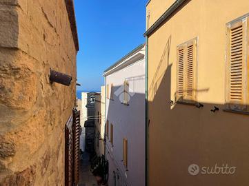 CASTELSARDO - CENTRO STORICO - Via Marconi Il palazzo storico di Via Marconi ha a fortuna di sorgere ai piedi delle maestose mura della fortezza dei Doria, cuore della Storia Castellanese, inoltre è l'unica zona del borgo accessibile in auto. Date le sue caratteristiche straordinarie questa Abitazione si posiziona sul mercato come un pezzo unico nel suo genere. Con i suoi 200 mq distribuiti su due livelli, questa Abitazione, risalente al lontano '900 e ricostruita a nuovo nel 2013, racchiude in sé il fascino della tradizione castellanese e tutti i comfort della modernità. Per la pavimentazione sono stati scelti dei gres porcellanati di prima scelta che rievocano l'antico cotto, impreziositi con degli intarsi in ceramica. Grazie alle sua costruzione caratterizzata da mura possenti viene garantita in tutte le stagione un isolamento termico ed acustico, godendo appunto un clima fresco nei mesi più caldi e tenendo il calore nel periodo invernale. Tutti gli ambienti vengono riscaldati con termosifoni mediante una Idrostufa a Pellet posizionata nel soggiorno. Al piano terra veniamo accolti dall'ingresso, un ambiente caldo ed accogliente che ci accompagna al soggiorno, rifinito e curato in ogni dettaglio. Su questo livello è presente il primo bagno con doccia. Dall'ingresso grazie alla scala interna realizzata interamente in trachite castellanese, raggiungiamo il primo piano dove è presente la zona notte composta da due ampie camere matrimoniali, una camera studio, un ripostiglio funzionale e a completare il bagno padronale con la particolarità della presenza di un piccolo balconcino con una meravigliosa vista sul campanile e un piccolo scorcio sul mare. Le camere sono state arredate con pezzi storici come i letti in ferro battuto risalenti ai primi del '900, custoditi negli anni con cura dalle precedenti generazioni.Completiamo la proprietà al secondo ed ultimo piano con la luminosa cucina, un ambiente funzionale organizzato e studiato in ogni dettaglio dal quale ragg