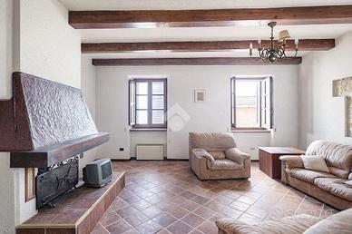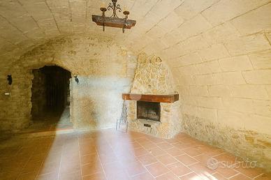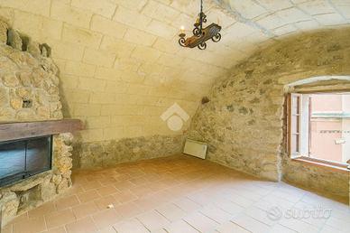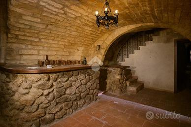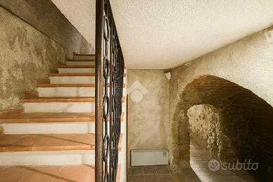 La proprietà si completa con una suggestiva taverna, caratterizzata da un angolo bar, un soggiorno con camino, separato da un tipico arco in pietra che rende l'ambiente caldo e conviviale. Da qui si accede anche a un secondo ingresso dell'immobile dalla via parallela, mentre una piccola porticina laterale conduce direttamente sulla via principale, Via Vittorio Emanuele. In questo livello è presente anche un pratico bagnetto di servizio.