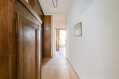 L'ingresso principale al piano terra conduce alla prima camera matrimoniale, dotata di bagno privato. Proseguendo lungo il corridoio troviamo altre due camere da letto e un secondo bagno con doccia.