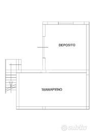 Piano Sottostrada: terrazzo antistante con cancelletto,ingresso con cucina/salone a vista con camino, una camera da letto e servizio.