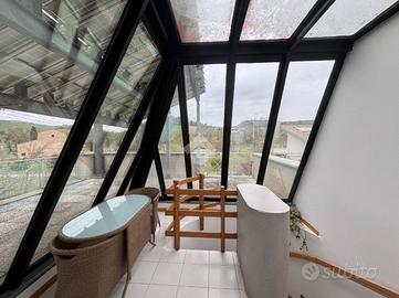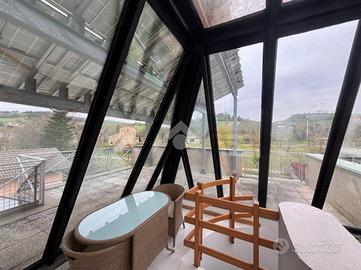 TECNOCASA VIALE RISORGIMENTO propone alla sua clientela CASA SEMINDIPENDENTE in CLASSE A/2 e completamente ristrutturata nel 2010. Situata nella zona più moderna e prestigiosa di Castrocaro, la casa è frutto di un progetto d'architettura di alto livello. La casa sfrutta una straordinaria separazione degli ambienti e con diversi spazi che permettono ad una famiglia numerosa o a professionisti di poter ricavare zone separate da dedicare ai propri interessi. Il piano rialzato è interamente dedicato alla zona giorno e si compone di: studio, cucina abitabile, sala da pranzo open space sul salotto e bagno per gli ospiti. L'unicità degli ambienti sta nelle vetrate che coprono tutta la superficie della parete perimetrale. La zona giorno si affaccia quasi come un terrazzo lungo tutto il giardino, dando l'impressione di essere costantemente immersi nel verde. La scala che permette di muoversi tra i vari piani percorre tutta l'altezza della casa ed è ampia e comoda all'utilizzo. Nel piano primo si sviluppa la zona notte. La camera padronale è molto confortevole, di grande metratura e con bagno privato; terrazzo con affaccio sulle colline e cabina armadio. La zona notte continua con una seconda camera matrimoniale, una camera singola spaziosa e luminosa ed un secondo bagno che serve il piano secondo. Il vero gioiello della casa, nonché fulcro del lavoro del progettista, è la copertura in vetro che funge da tetto. Continuando ci ritroveremo infatti in un ambiente sottotetto panoramico su tutte le colline circostanti. Da lì si potrà accedere o alla mansarda o all'enorme terrazzo. La mansarda è ben vivibile sia per le altezze che per la coibentazione del tetto. Potrebbe essere un ottimo spazio hobbistico o per dare ai membri del nucleo familiare uno spazio dove stare con i propri ospiti. Il terrazzo invece offre una vista che spazia dalla rocca di Castrocaro fino al Monte Poggiolo. Un terrazzo sfruttabile anche per cene o pranzi con amici e familiari o come semplice zona di