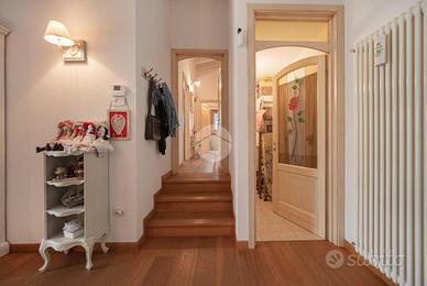 All'esterno, una pergola automatizzata nel porticato crea un elegante spazio all'aperto, ideale per cene estive o momenti di relax in totale privacy.