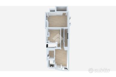 L'immobile è composto da un soggiorno luminoso, un cucinino con finestra, due camere da letto anch'esse finestrate, un bagno e due ripostigli. Dispone di due ingressi: uno dal soggiorno e l'altro dalla cameretta, offrendo praticità e indipendenza.
