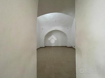 * La seconda stanza, leggermente rialzata da due gradini, mantiene lo stesso stile architettonico con volte e archi in pietra, ideali per valorizzare un arredo ricercato o una ristrutturazione di charme.