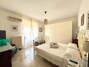 Il soggiorno è provvisto di riscaldamento autonomo mediante radiatori, come tutti i vani, ma anche di condizionamento. Stessi benefici anche per la camera matrimoniale, con uscita sul medesimo balcone del soggiorno, e per l'ultima camera da letto che chiude il disimpegno e presenta l'uscita sul balcone con affaccio nel pozzo luce.