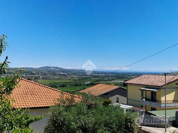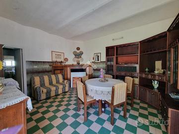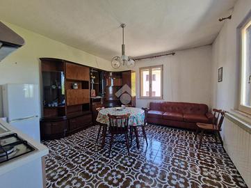 Al primo piano si sviluppa l'abitazione principale, che comprende un ingresso, un luminoso soggiorno con angolo cottura, un bagno cieco con doccia ed una generosa camera matrimoniale. A disposizione un accogliente terrazzo che regala una vista mozzafiato dal verde della vallata fino al blu del mare Adriatico.