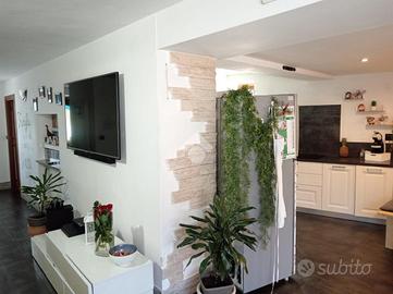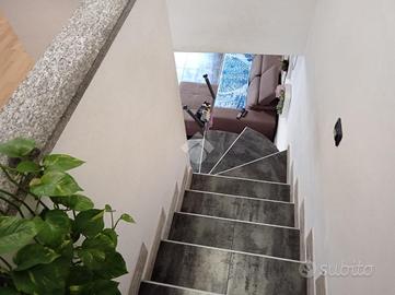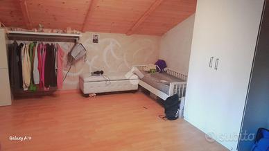 L'abitazione è composta da piano terreno di ingresso living su ampio salone, cucina, ripostiglio e bagno con doccia idromassaggio; al piano primo di 2 camere, studio e bagno, al piano mansardato camera e bagno.