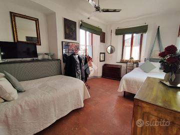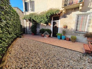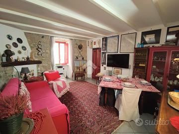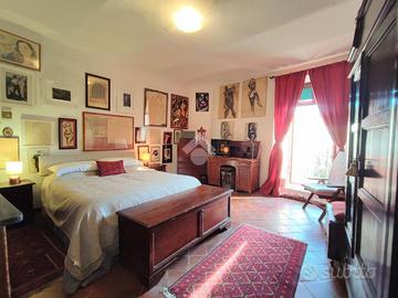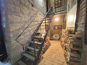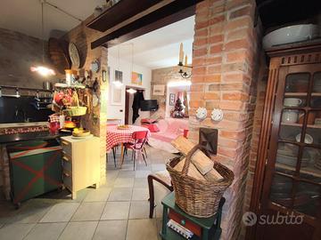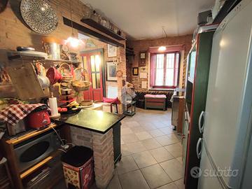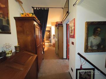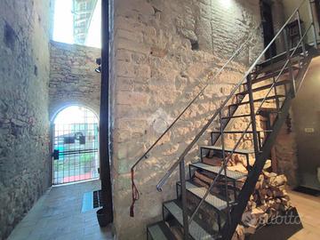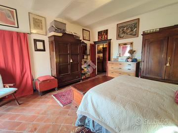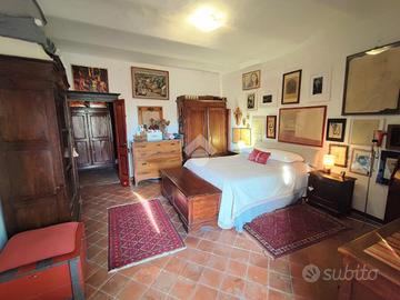 La proprietà è nel centro storico di Cerreto Grue, piccolo borgo sulle colline tortonesi. L'abitazione è disposta su più livelli. Al piano terra vi è l'ingresso principale direttamente dalla strada. Il tinello è con la cucina a vista e la dispensa ha mattoni originali. Un secondo accesso dal disimpegno affaccia sul cortile interno privato e riservato. Il soggiorno è spazioso e dotato di camino, oltre al bagno con la doccia vi è anche un grazioso cantinotto in tufo ideale per la conservazione di salumi e vini. Il vano scala con pietra in Sarizzo conduce al primo piano dove troviamo l'ampia camera padronale con balconcino e con affaccio sul cortiletto. Tramite il disimpegno ideale come piccolo angolo studio si accede alla seconda camera da letto anch'essa di ampia metratura con pavimenti originali in cotto. Il bagno è finestrato e dotato di doccia. Un ulteriore e spazioso corridoio con la libreria fa da collegamento al cavedio coperto, comodo accesso al secondo e ultimo piano. Quest'ultimo dispone anche di un ingresso privato chiuso tramite un cancello con affaccio su piazzetta esterna. Su questo piano, ideale da mettere a redditto e utilizzare come B&B, vi è un unico e ampio locale adibito a camera da letto con camino in pietra e angolo cottura, oltre ad un bagno privato. Sempre nel cavedio vi è una torre millenaria in pietra a tre piani, ora ad uso magazzino. Completa la proprietà un comodo e ampio garage con ulteriore locale ripostiglio.