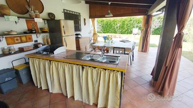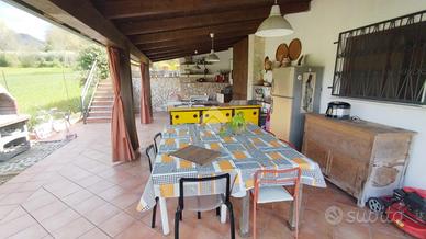 Cervaro, via Prato, proponiamo in vendita esclusiva una casa indipendente situata in una tranquilla e ricercata zona residenziale. La proprietà si sviluppa su due livelli fuori terra, offrendo ampi spazi interni e una gestione versatile degli ambienti, ideale anche per due nuclei familiari. Distribuzione degli spazi: Piano terra (Zona Padronale): l'accesso principale conduce a una zona giorno luminosa caratterizzata da un salone con camino, perfetto per l'atmosfera invernale, e una cucina abitabile. La zona notte comprende tre ampie camere da letto e un bagno funzionale. Da questo livello è inoltre possibile accedere al sottotetto ad uso deposito. Piano Seminterrato (Seconda Unità o Zona Living): Il piano inferiore, con ingresso indipendente, è configurato come un vero e proprio appartamento autonomo. Dispone di un secondo salone con camino, cucina, una camera da letto, bagno e un pratico ripostiglio. Il vero valore aggiunto della proprietà è il giardino esclusivo di circa 1.400 mq, un'oasi di verde curata che alterna zone scoperte a zone d'ombra. All'interno del giardino troviamo un elegante porticato in legno attrezzato con cucina esterna, lo spazio ideale per pranzi e cene all'aperto in totale privacy. Caratteristiche principali: * Superficie terreno: 1.400 mq circa. * Configurazione: Duplice elevazione con ingressi indipendenti. * Plus: Doppio camino, gas metano e pellet, zanzariere, porticato in legno, zona residenziale tranquilla. * Stato: Ottima esposizione e ampi volumi. Questa soluzione è perfetta per chi cerca la massima indipendenza senza rinunciare alla vicinanza ai servizi, con il valore aggiunto di un'area esterna già pronta per essere vissuta.