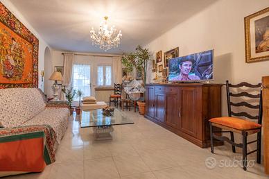 Il piano terra è costituito da un luminoso e accogliente soggiorno, cucina separata con accesso ad una comoda veranda, ripostiglio e un bagno dotato di box doccia.