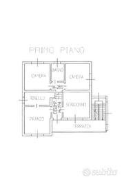 Attraverso una scala esterna si accede al primo piano, dove un comodo disimpegno introduce gli ambienti principali. Sulla sinistra si apre una luminosa sala da pranzo, ben proporzionata e connessa direttamente alla cucina abitabile. Proseguendo, si raggiunge il soggiorno, un ambiente spazioso e accogliente, pensato come fulcro della vita quotidiana e luogo ideale per trascorrere momenti di relax in famiglia o in compagnia. La zona notte, ben separata dalla zona giorno, comprende due camere matrimoniali di ampia metratura, divise da un bagno finestrato con vasca.