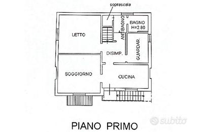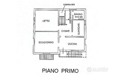 Salendo al primo piano, si accede a un luminoso soggiorno con cucina separati, una camera matrimoniale, una stanza che può essere adibita a seconda camera e un bagno con antibagno.