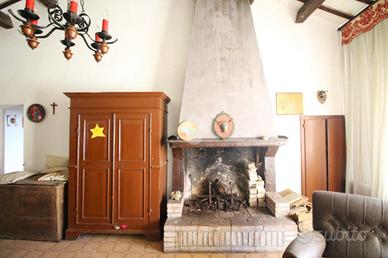 Il casolare richiede importanti interventi di ristrutturazione, ma presenta un soggiorno ampio, con travi a vista e un imponente camino in muratura che, se ripreso, può senz'altro costituire un interessante elemento d'arredo per questa zona della casa.