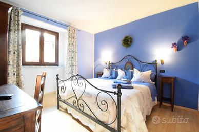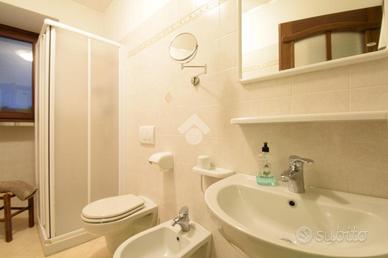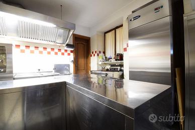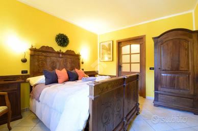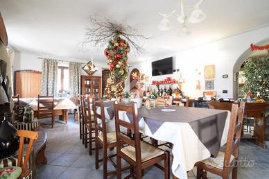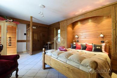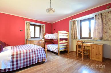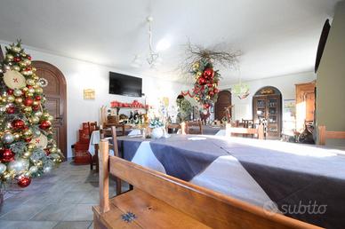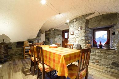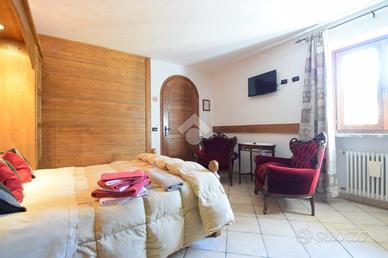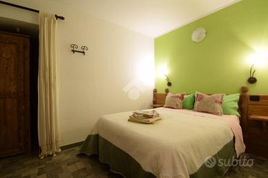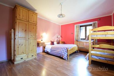 L'immobile è situato nel caratteristico borgo di Ville, nel comune di Challand-Saint-Victor ed è posto a pochi passi da un ampio parcheggio pubblico, dal parco giorchi e dai servizi del centro. Esso si sviluppa su quattro livelli ed è libero su tre lati. Al momento ospita due unità immobiliari, una ricettiva come affittacamere ed una abitativa collocata all'ultimo piano. L'immobile si presta quindi sia per avviare un'attività oppure per essere facilmente trasformata in più alloggi. Lo stabile è frutto di una meticolosa ristrutturazione di un antico fabbricato storico e si presenta in ottime condizioni. La porzione dedicata all'affittacamere occupa due piani dello stabile con una grande sala ristorante/colazioni posta al primo piano e dominata dal caratteristico camino a legna. La cucina è a vista sulla sala ed è completamente attrezzata con mobilio in acciaio di tipo professionale. Sullo stesso livello è presente la più grande delle camere per gli ospiti, dotata di servizio privato con doccia, sauna in camera ed un salottino che ospita un divano letto. l'intero piano è circondato da un piacevole balcone in legno. Un bagno/lavanderia di servizio completa il piano. Il piano rialzato è dedicato alle altre quattro camere. Ogni camera presenta caratteristiche differenti e sono tutte dotate di bagno privato. Esse sono collegabili due a due nel caso si vogliano ottenere dei bilocali. La camera 1 (nelle foto) è la più spaziosa ed ospita sia un letto matrimoniale che un letto a castello. La seconda camera è caratterizzata dal bagno accessibile predisposto per i disabili. La terza e la terza camera hanno accesso dal latro opposto e dispongono di un balcone che percorre due lati della casa. Tutte le camere presentano arredo tipico Valdostano in legno. L'appartamento padronale all'ultimo piano mansardato ha accesso sia dalla scala esterna sia dal retro della cucina dell'affittacamere. La cucina è abitabile in quanto composta da una zona cottura ed una zona tinello con balcon
