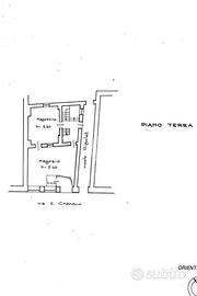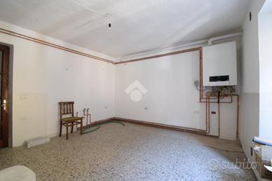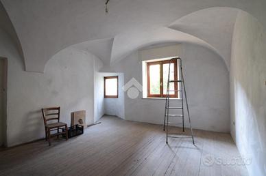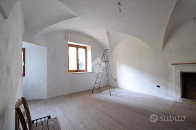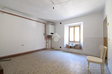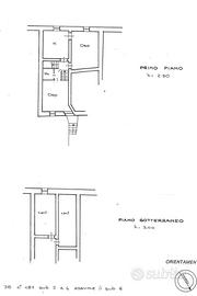 Il primo piano è suddiviso in tre vani, due affacciati a Sud e collegati tra loro, dotati di impianto di riscaldamento con caldaia a metano recentemente installata e di attacchi per la realizzazione di una cucina. la stanza a Nord ospitava un camino a legna e dispone di un bagno cieco con vasca.