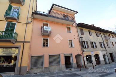 La proprietà è una tipica casa semi-indipendente del centro storico di Châtillon, caratterizzata dal doppio affaccio, a Sud sulla via Chanoux, a Nord sui cortili interni. La posizione è ideale per la vicinanza al parcheggio pluripiano ed a tutti i servizi che offre il comune, quali USL, biblioteca regionle, snodo di trasporto pubblico, supermercati e negozi di vicinato. Il locale commerciale al piano terreno dispone di tre vetrine prospicenti la via principale ed oltre al locale adibito a negozio, è composto anche da un magazzino sul retro. Un servizio igienico è posto nel vano scale ad uso del locale commerciale.