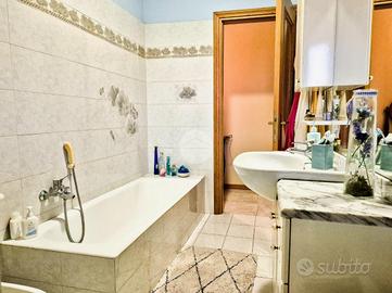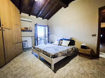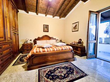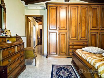 Primo Piano: Una comoda scala conduce alla zona notte, dove si trovano tre camere da letto di generose dimensioni: una camera doppia ideale per ragazzi o ospiti;una camera matrimoniale di 16 mq con balcone privato di 3 mq;una seconda camera matrimoniale di 20 mq con terrazzo panoramico di 8 mq, che offre una splendida vista sul giardino e sul paesaggio circostante. Tutte le camere del piano superiore sono caratterizzate da travi a vista in legno, che conferiscono un'atmosfera accogliente e rustica, e sono dotate di impianto di climatizzazione. Il piano è completato da un bagno finestrato con vasca.