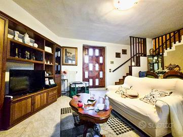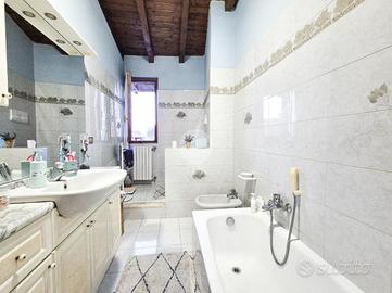 Primo Piano: Una comoda scala conduce alla zona notte, dove si trovano tre camere da letto di generose dimensioni: una camera doppia ideale per ragazzi o ospiti;una camera matrimoniale di 16 mq con balcone privato di 3 mq;una seconda camera matrimoniale di 20 mq con terrazzo panoramico di 8 mq, che offre una splendida vista sul giardino e sul paesaggio circostante. Tutte le camere del piano superiore sono caratterizzate da travi a vista in legno, che conferiscono un'atmosfera accogliente e rustica, e sono dotate di impianto di climatizzazione. Il piano è completato da un bagno finestrato con vasca.