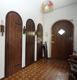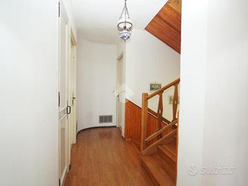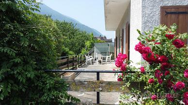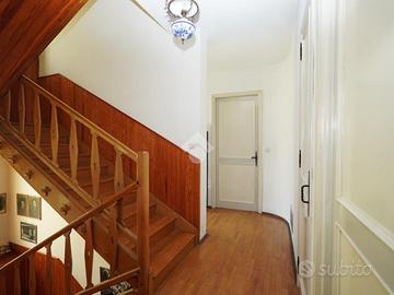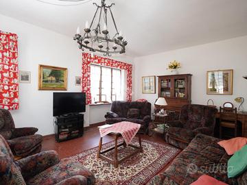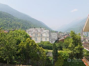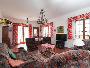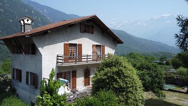 A Chiomonte, in pieno centro paese, villa indipendente su quattro lati, con ampio giardino privato di circa 1000 mq. L'immobile, edificato nel 1965, gode di una principale esposizione a sud che garantisce una buona luminosità durante tutta la giornata. La proprietà si sviluppa su due livelli principali, oltre a un locale sgombero e a un piano interrato. Al piano terra si trovano il soggiorno, la cucina e un bagno. Il primo piano ospita tre camere da letto, luminose e di generose dimensioni. L'abitazione presenta finiture in stile montano, tra cui il parquet in alcune stanze, che conferisce calore agli ambienti. Il piano interrato include un ampio box auto e diversi locali accessori. Il sistema di riscaldamento è autonomo, alimentato a gasolio, con diffusione del calore tramite bocchettoni d'aria. Completano la proprietà ampi terrazzi e un giardino ben distribuito, ideali per vivere spazi esterni in tranquillità. L'immobile si presenta in condizioni originali, offrendo così la possibilità di una personalizzazione completa, ma risulta comunque ben mantenuto e immediatamente abitabile.